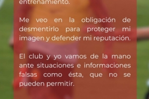 我不得不对此予以否认,以维护个人形象并捍卫声誉。俱乐部和我将共同应对此类虚假信息和情况,此类行为绝不能被容忍。