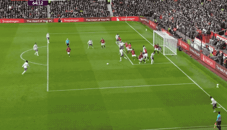第53分钟,曼联获得角球,B费主罚,卡塞米罗在3名维拉球员的夹击下,抢到落点头槌破门。